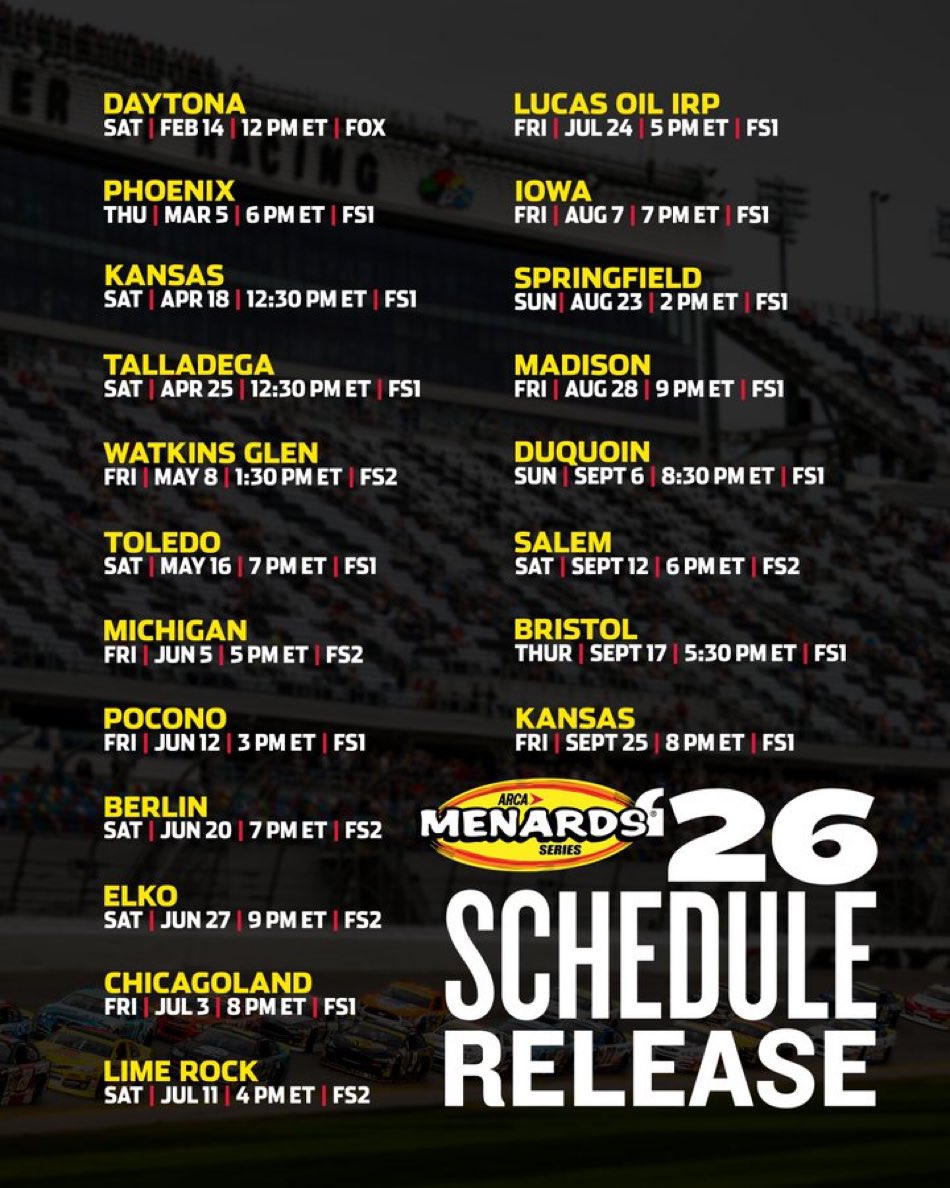 Vedení šampionátu včera zveřejnilo kalendář na nadcházející sezónu 2026 a nový ročník opět odstartuje v únoru na Daytona International Speedway.
