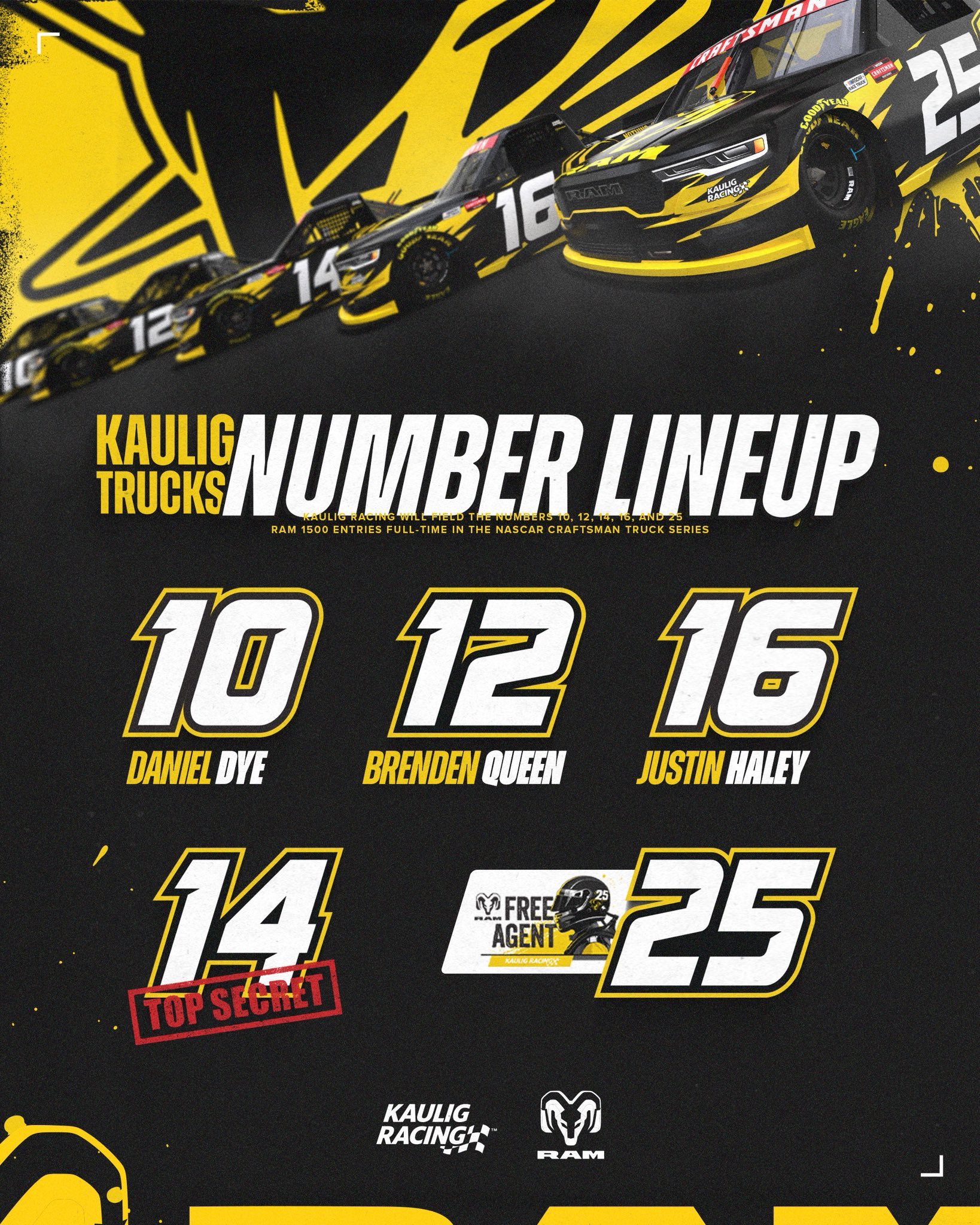 Čísla vozů týmu Kaulig Racing v Truck Series.