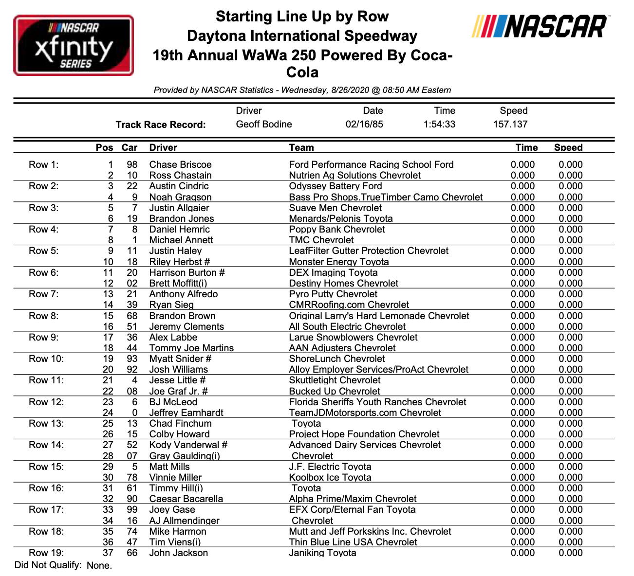 Startovní pořadí Gander RV & Outdoors Truck Series