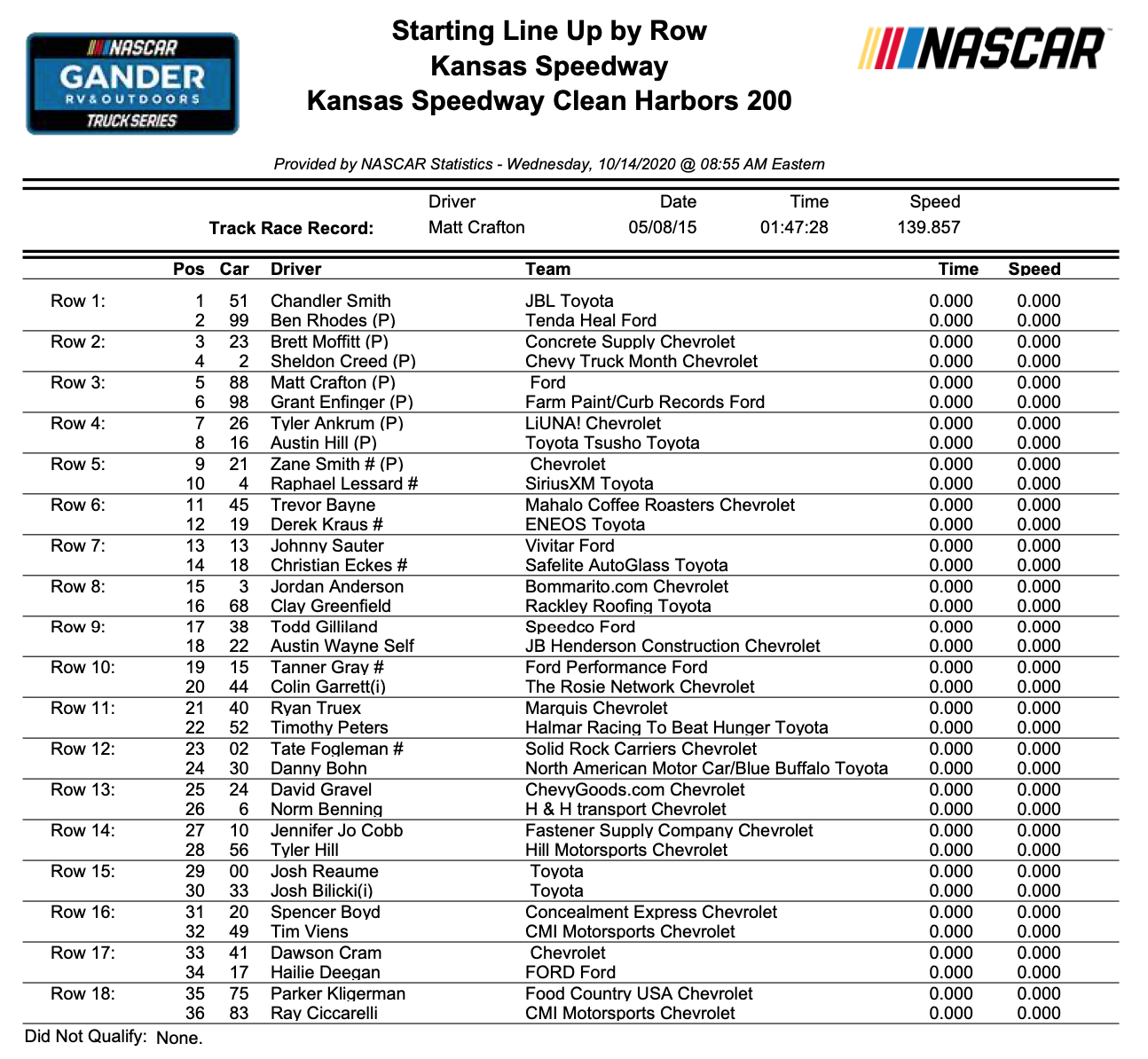Startovní pořadí Gander RV & Outdoors Truck Series