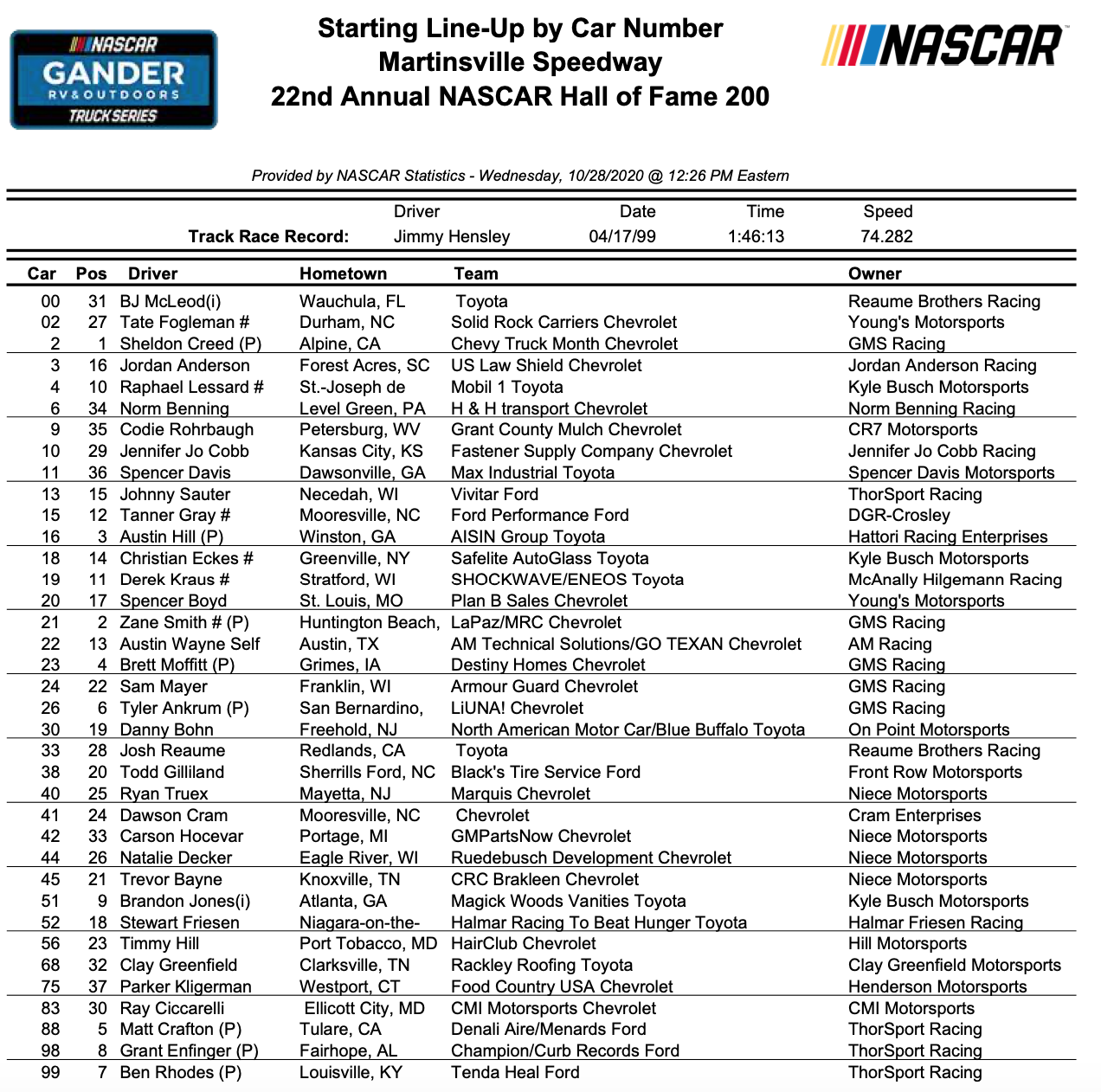 Startovní pořadí Gander RV & Outdoors Truck Series