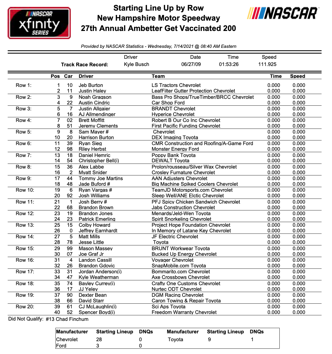 Startovní pořadí Xfinity Series