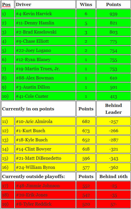 | 8 | William Byron | Chevrolet | 65 | 13 | 0 | 40 | 11 |