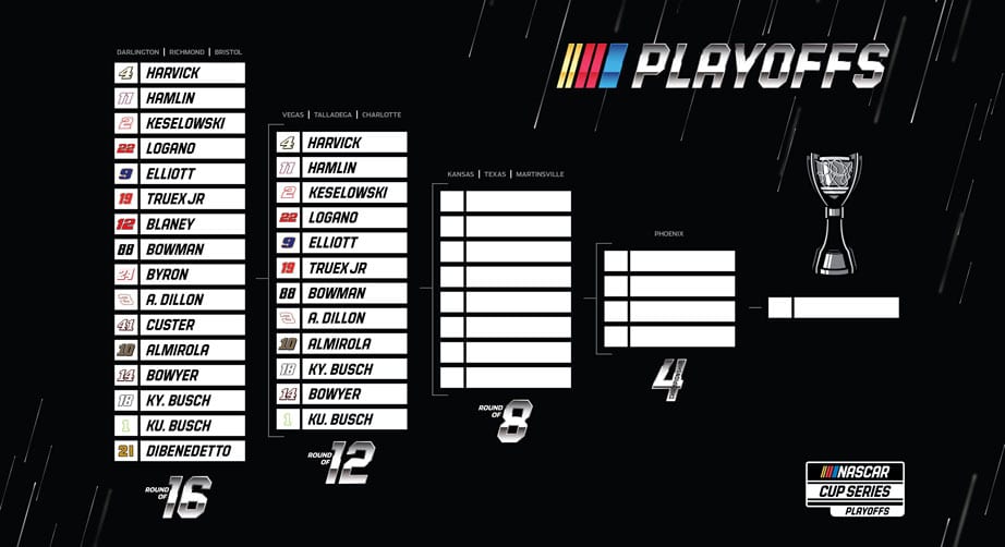 Pěti set kolové klání v Bristolu bylo zároveň poslední zastávkou playoff části Round of 16 a čtyři jezdci museli z kola ven. Na pomyslné bublině byli Blaney, DiBenedetto, Custer a Byron a právě tito jezdci tam zůstali i po dojetí závodu.