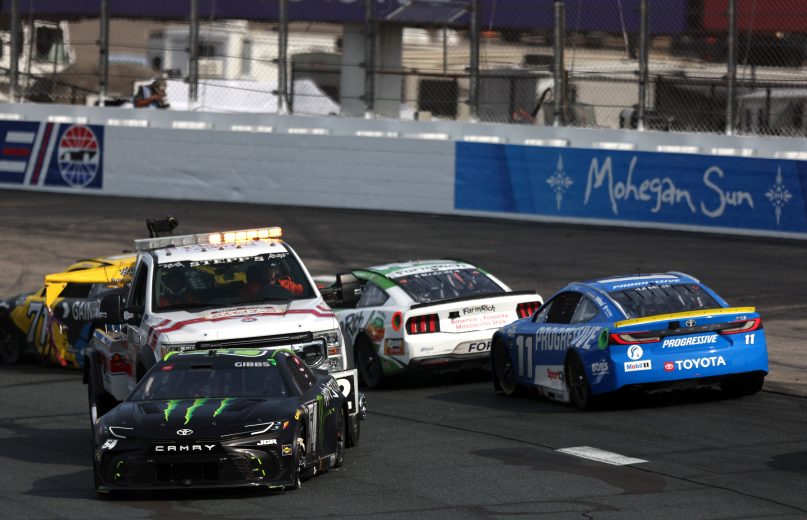 Kuriózní situace nastala ve sto jedenáctém kole, kdy se do křížku dostali jezdci Joa Gibbse Denny Hamlin a Ty Gibbs. Zkušenější z dua si stěžoval na zbytečně agresivní manévry vnuka šéfa týmu, až ho lehce popostrčil v nájezdu do první zatáčky. Gibbs se roztočil a nakonec po pár kolech s poškozeným vozem musel odstoupit.