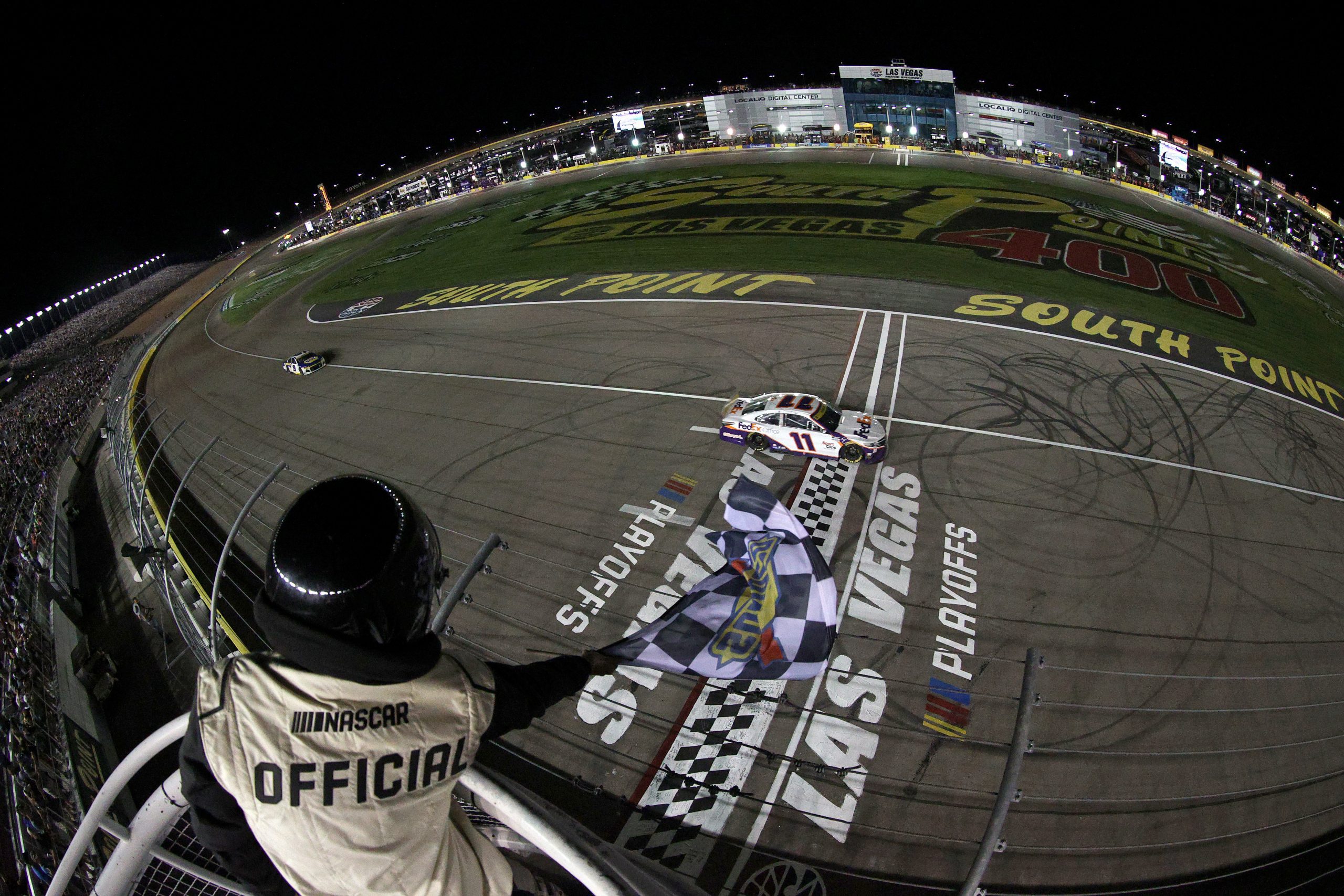 Konec základní části se Denny Hamlinovi moc nepovedl, v playoff si však všechno vynahrazuje a dojel si již pro své druhé vítězství a jako první si zajistil postup do Round of 8.
