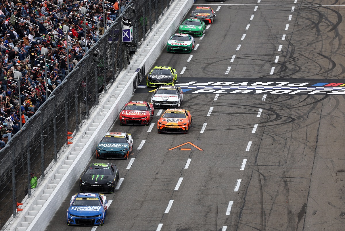 Pre rozdielne stratégie sa na reštarte ocitol vpredu Reddick, no o päť kôl sa predral do vedenia Ryan Blaney a ten tam zostal až do 376. kola, keď zamieril do boxov. Počas pit-stopov pod zelenou zaviali ďalšie žlté vlajky, keď sa v tretej zákrute roztočil Jones. Následne šli po nové pneumatiky aj ostatní jazdci a do vedenia sa vrátil opäť Blaney. V poslednej časti mali veľké problémy s motorom Toyoty, pre ktoré museli skončiť Hamlin, Briscoe a Herbst. Súboj o víťazstvo sa zmenil na fantastickú bitku medzi Blaneym a Byronom, ktorá sa rozhodla v 458. kole, keď sa Byron pretlačil do vedenia a už nikoho pred seba nepustil. Do cieľa prišiel s náskokom 0,717 sekundy a zabezpečil si miesto v boji o titul.