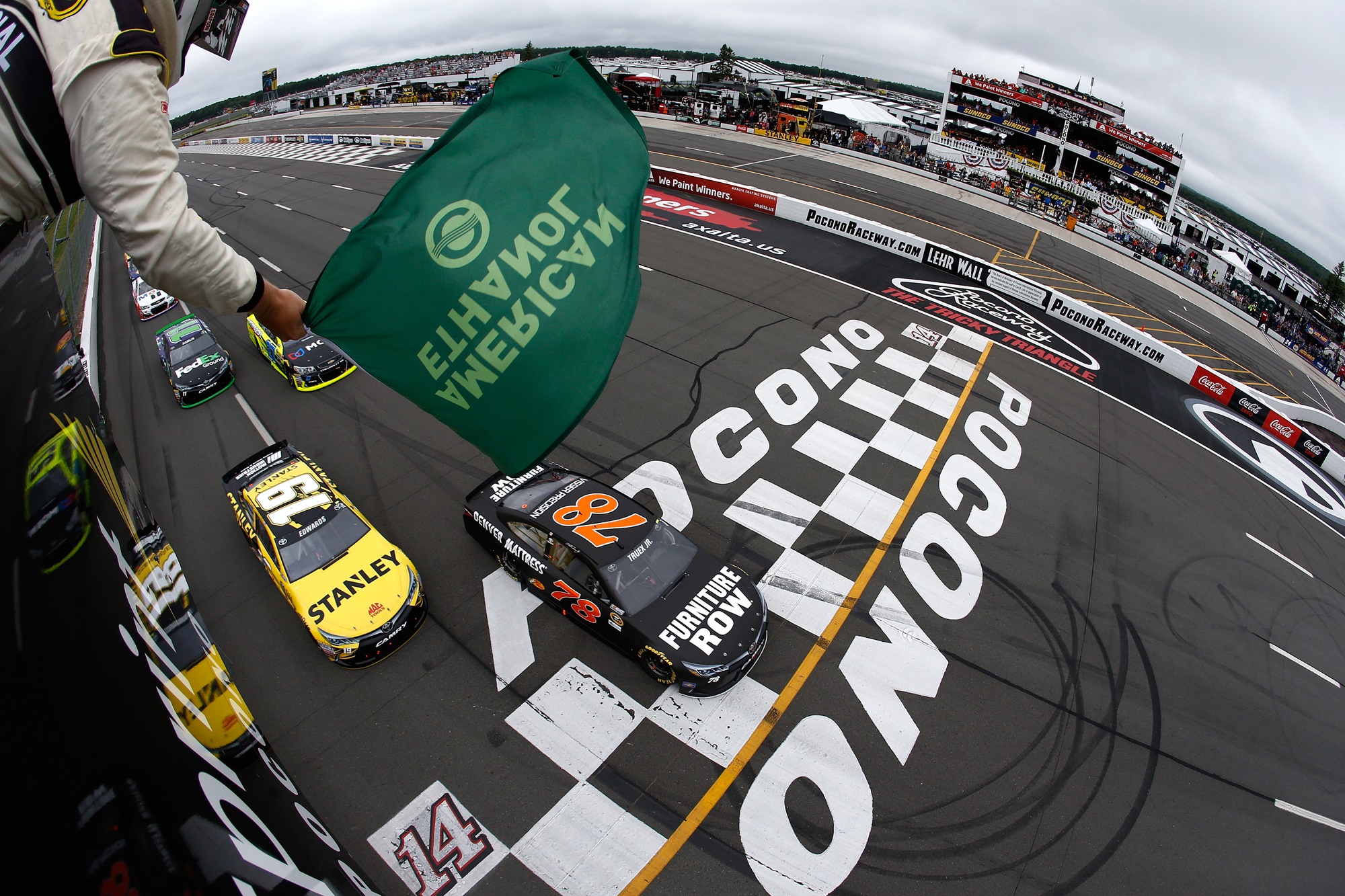 Restart si pohlídal Larson před Kylem Buschem a Austinem Dillonem. Po další sérii zastávek za plného závodního tempa, které ve sto dvacátém druhém kole zahájil Edwards došlo na další přerušení, na Pocono se snesla hustá mlha, která bránila závodění. Po několika desítkách minut červených vlajek se navíc na okruh začal opět snášet déšť. V tu chvíli první (díky strategii dosud nevyužité zastávky u mechaniků) Chris Buescher měl tedy slušnou šanci závod vyhrát.