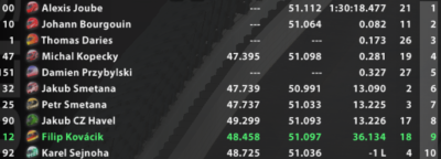 Okolo osemdesiateho kola bolo ale jasné, že to na palivo asi nevyjde, takže predná skupina na čele s CNS začala šetriť, čo to dalo. Jazdci Kraken ich vďaka tomu jednoducho obehli, a top 5 zmizli. Niektorí jazdci išli do boxov len pár kôl pred koncom, ale toto netrápilo Kraken a Michala Kopeckého. Na čele s Alexisom Joubem si prišli po ich prvú výhru sezóny. Za nimi išlo jazdcom o život, z prednej skupiny Smetanovci a Jakub Havel prišli v poriadku, ale Filipovi Kováčikovi došlo v polovici posledného kola palivo. Vďaka tomu, že bol posledný, ktorý do boxov nešiel, to dokázal na výparoch dotlačiť až cez čiaru, a top 10 uzavrel Karel Šejnoha.